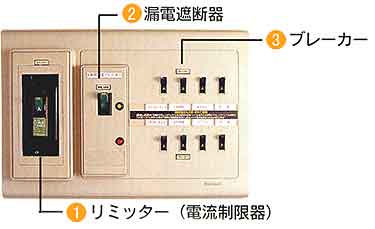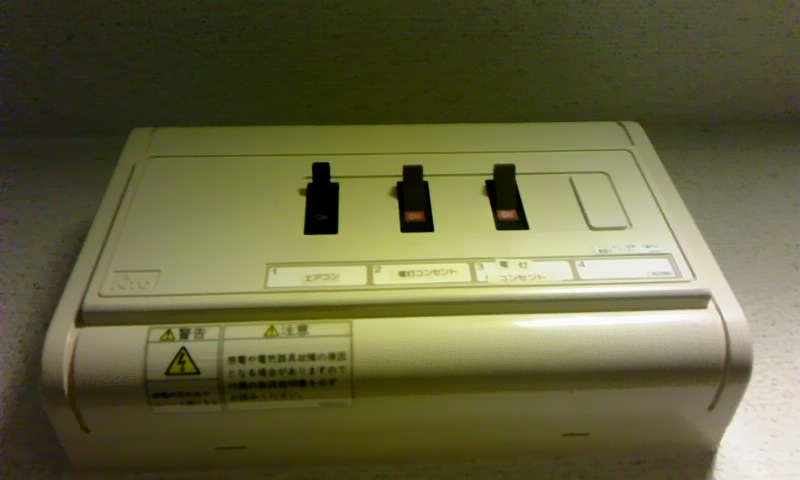 - 主幹ブレーカー(親玉のブレーカー。こいつを落とすと家の電気が全部止まる)