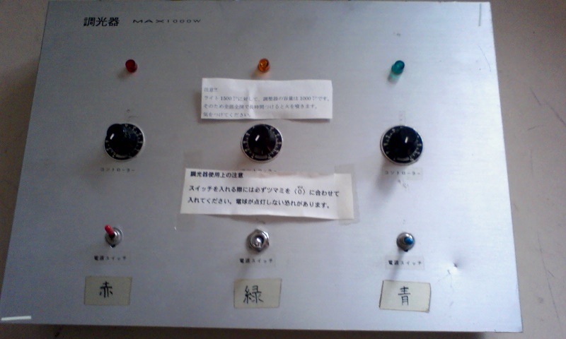 私が卒業した高校にも、3回路の自作調光器が2台ほどあり、文化祭などの時に使っていました。