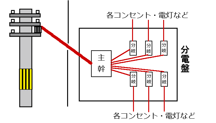 電柱からもらった電気を家のあちこちのコンセントや照明などに分ける場所