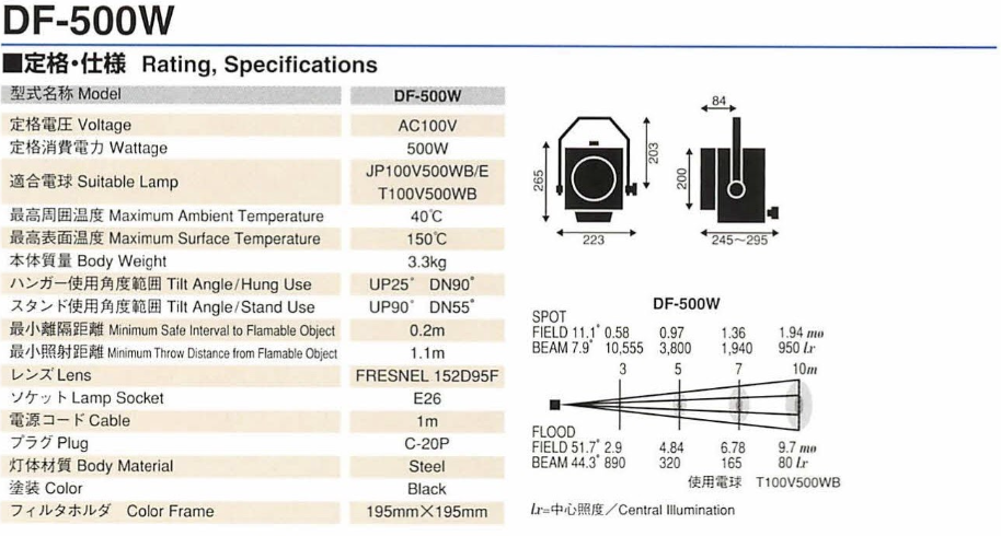 丸茂電機の大ベストセラーフレネル、DF-500Wです。